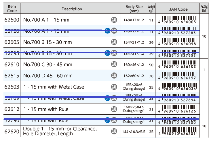 เกจวัดขนาด SHINWA รุ่น 62600 หมายเลข 700 สำหรับวัดเส้นผ่านศูนย์กลางภายในและช่องว่างขนาด 1-15 มม. ใช้งานง่าย น้ำหนักเบา และกะทัดรัด พร้อมปลอกเก็บ