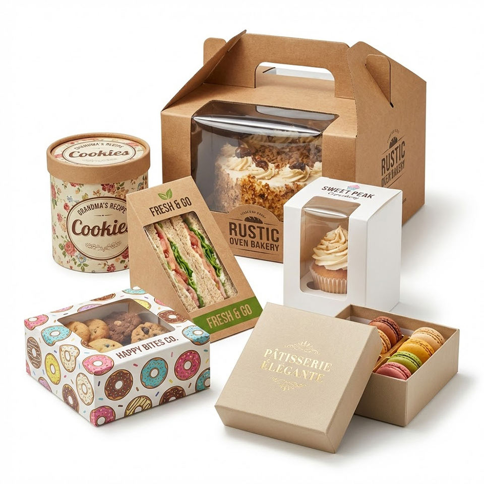 SHINY Wholesale Custom Color Logo Bakery Packaging Set Cake Box With Window Macaron Chocolate Gift Box Coffee Pouch
