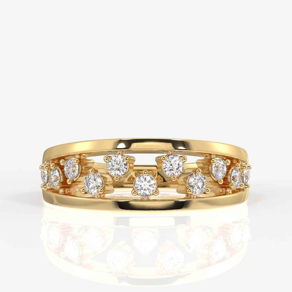 Shivpath 14K แหวนทองประกายเพชรแข็งในชุบทองสีเหลืองคลาสสิกและ Dainty Wedding band สำหรับเธอ
