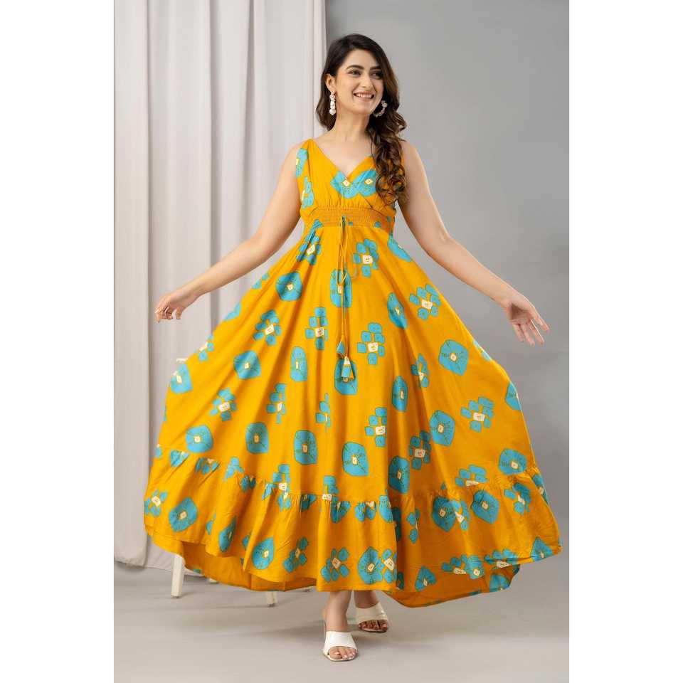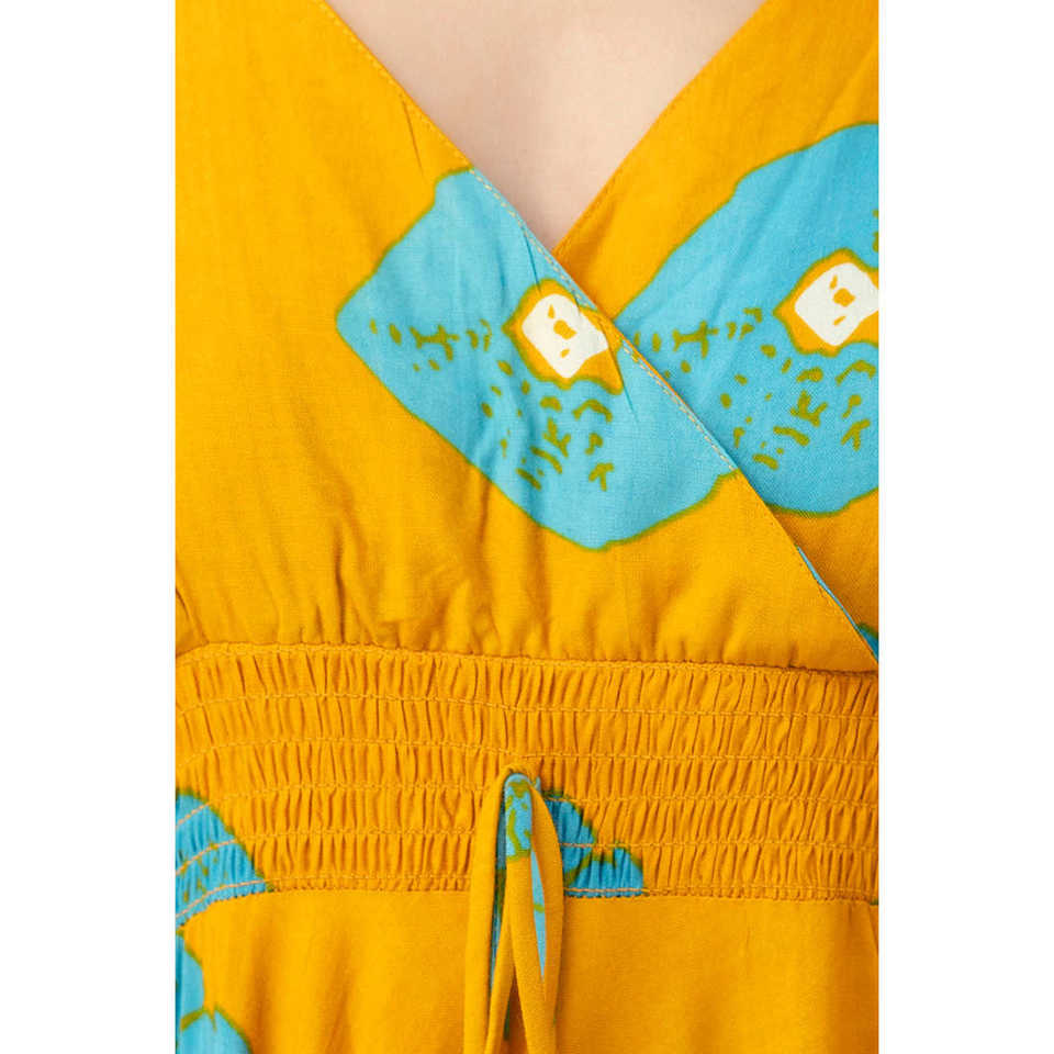 เดรสแม็กซี่แขนกุดพิมพ์ลายแอบสแตรกสำหรับผู้หญิงชุดเดรสสั้นหรูหราโปร่งแสงสำหรับใส่ได้ฟรี SHKUP1451สีเหลือง