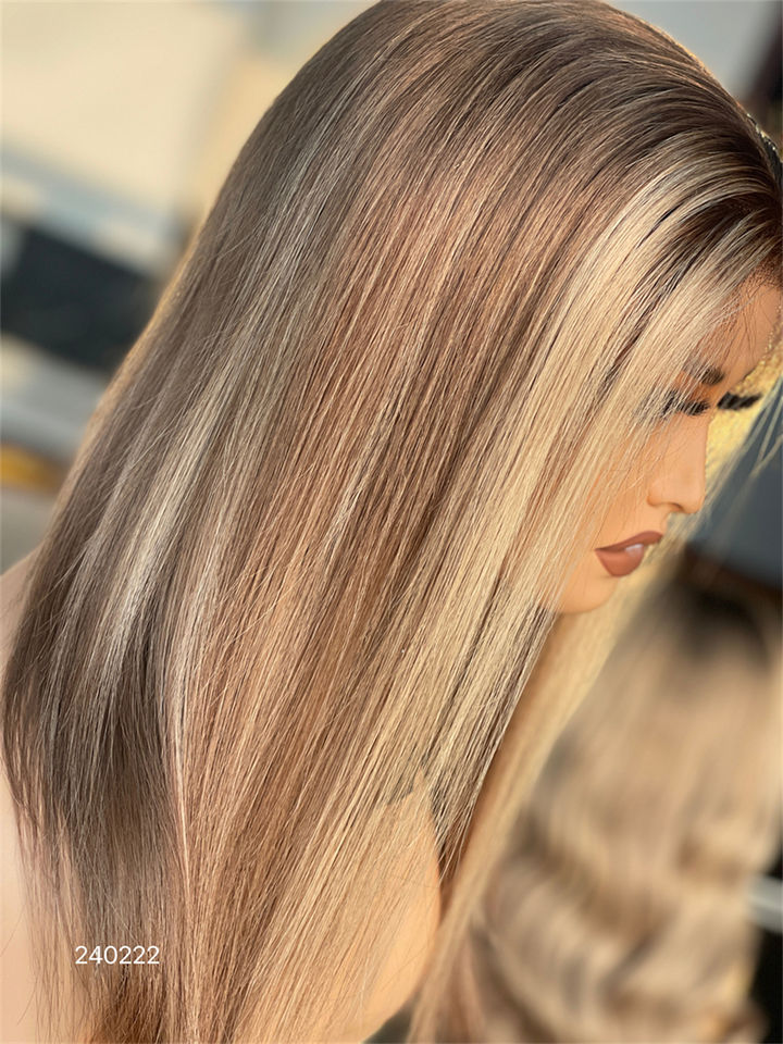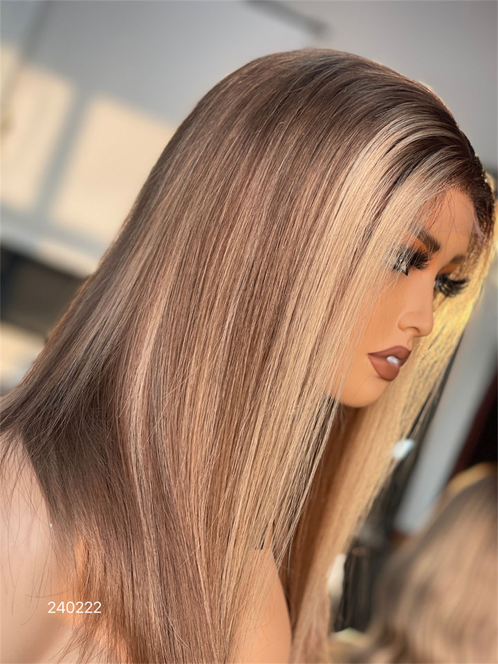 SHY Ashสีบลอนด์HDลูกไม้มนุษย์วิกผมOmbre Highlightsวิกผมสําหรับผู้หญิงสีขาวHigh-endโปร่งใสสั้นตรงลูกไม้ด้านหน้าวิกผม