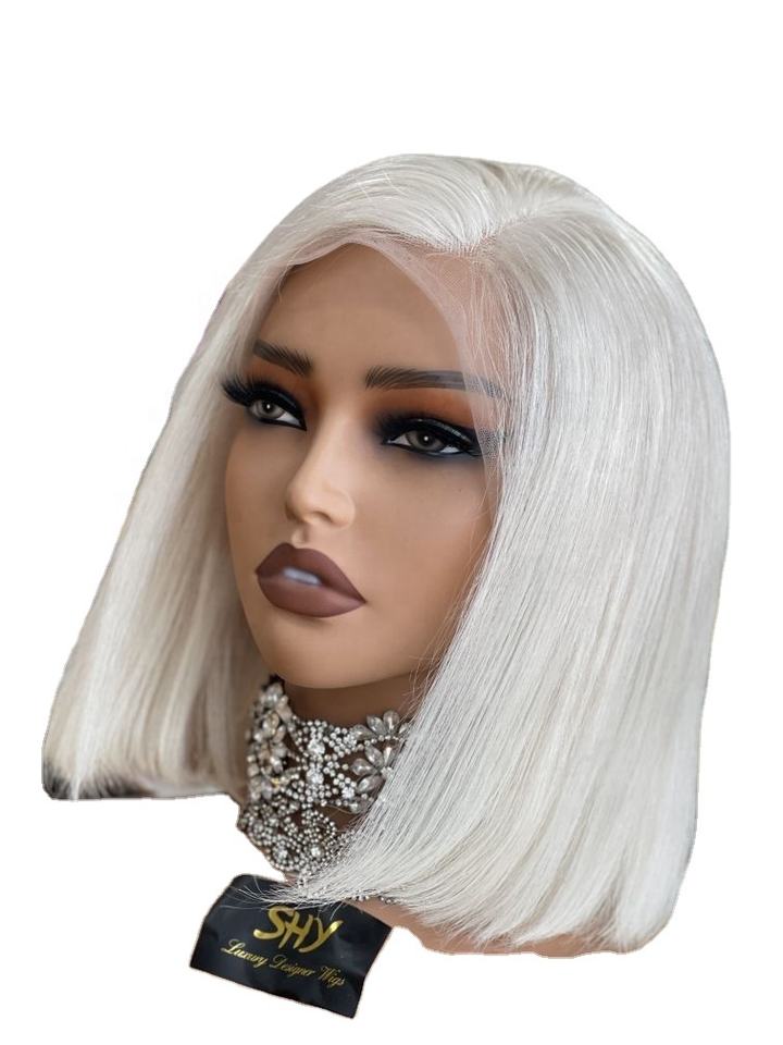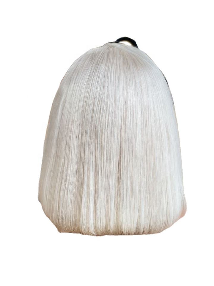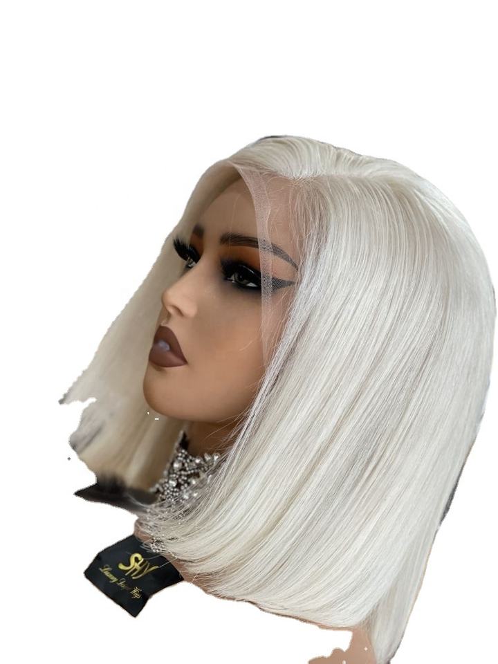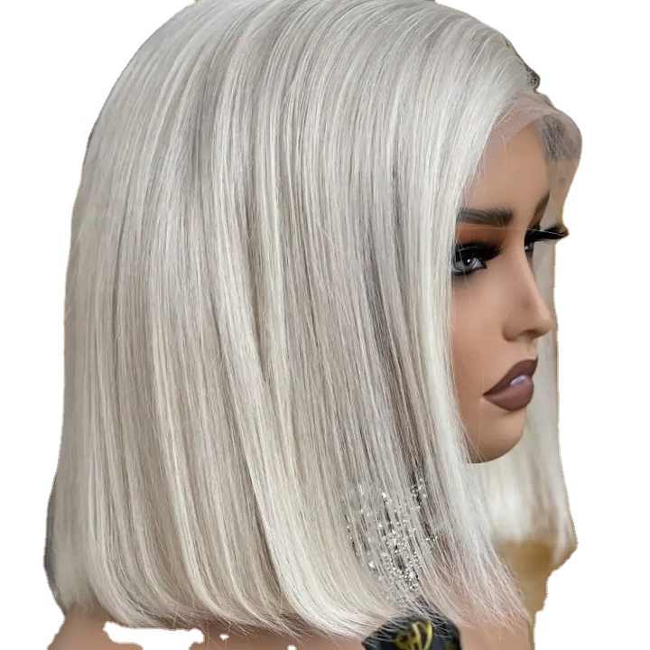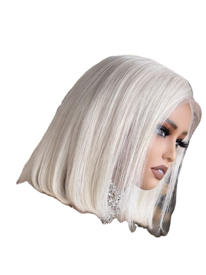 ชาริสมาที่ขี้อาย # วิกผมหน้าผากโปร่งใสแบบแพลตตินั่มบลอนด์ 60 เส้น ผมบริสุทธิ์สำหรับผู้หญิง ทรงบ๊อบสั้นหนา ผมหยักศก