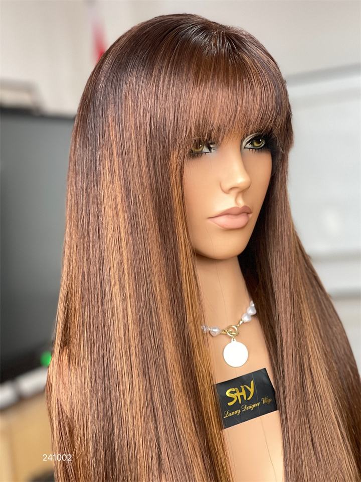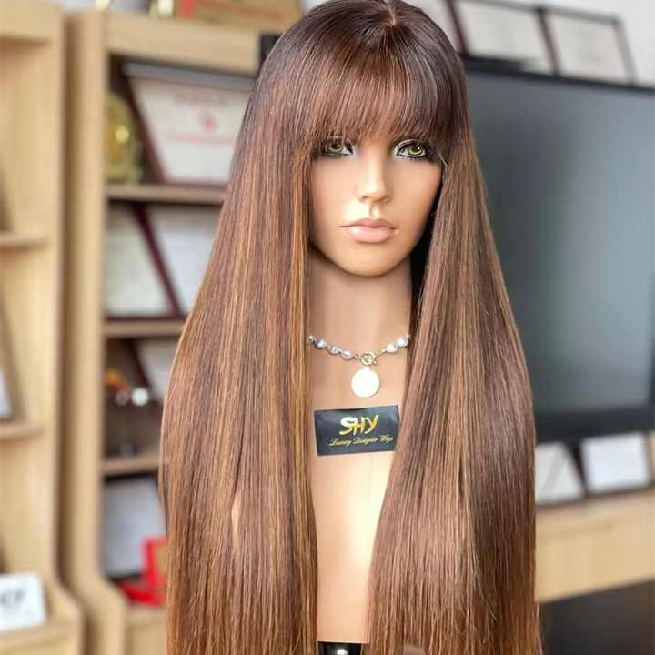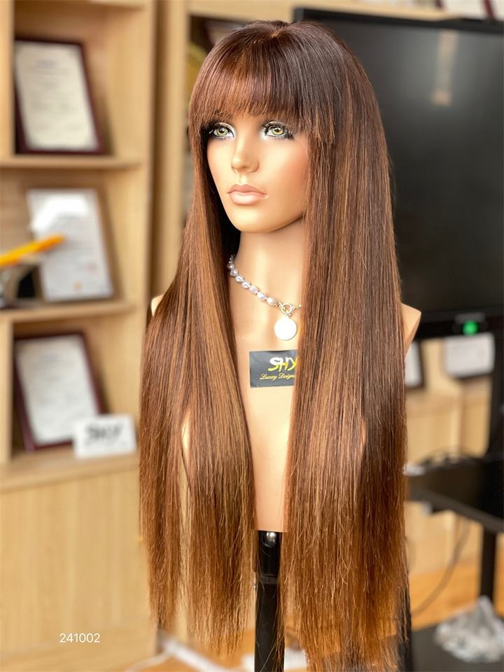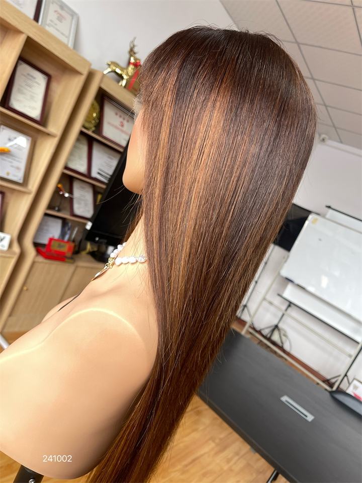 วิกผมยาว13x4 HD แบบมีลูกไม้ด้านหน้าผมสีน้ำตาลมีปมฟอกสีผมที่ดึงออกมาได้ก่อน