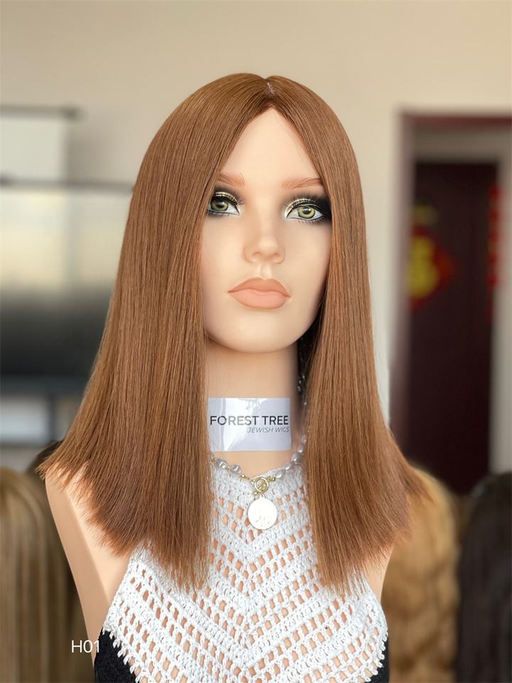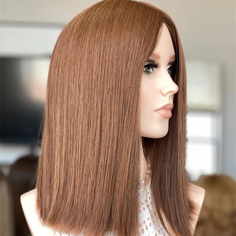 SHY Hair Luxury Design Glueless 16 Inch #8 Color European Human Hair Jewish Wigs Silk Top Wig for Women
