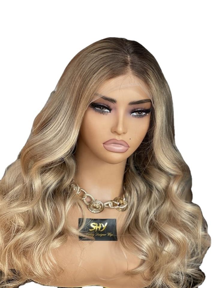 วิกผมคนแท้แบบมีลูกไม้ล้วนสีบลอนด์ดูหรูหราดีไซน์ใหม่ผมลอนแบบ5.0ปมเดียวกับผมเด็กผมคนอ้วน