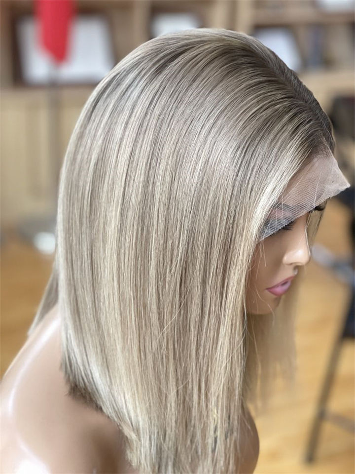 วิกผมสั้นบ๊อบลูกไม้ด้านหน้าผสมสีบลอนด์ผมมนุษย์แท้ชาวยุโรป