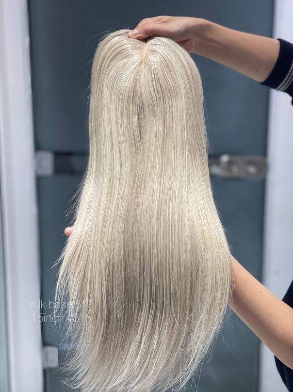 SHY ผมมนุษย์ท็อปเปอร์ฟรีส่วนฐานผ้าไหมplatluimสีบลอนด์ยุโรปดิบผมท็อปเปอร์ฐานผ้าไหม6*7นิ้วสําหรับผู้หญิงผมบาง