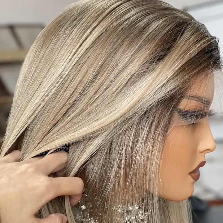 วิกผมลูกไม้เต็มศีรษะสีบลอนด์อ่อนหรูหรา balayage สำหรับชาวสวิส613ผมยุโรป