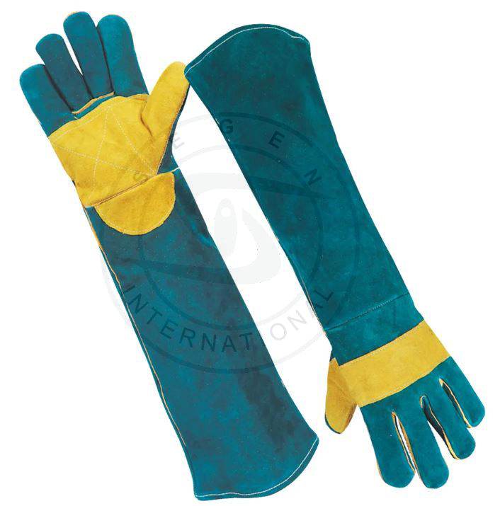 ถุงมือหนังวัวแท้แบบยาวสีเขียว SI-1117 XL ป้องกันการลื่น ป้องกันการบาด พร้อมซับในขนแกะ ได้รับการรับรองมาตรฐาน EN สำหรับงานเชื่อม