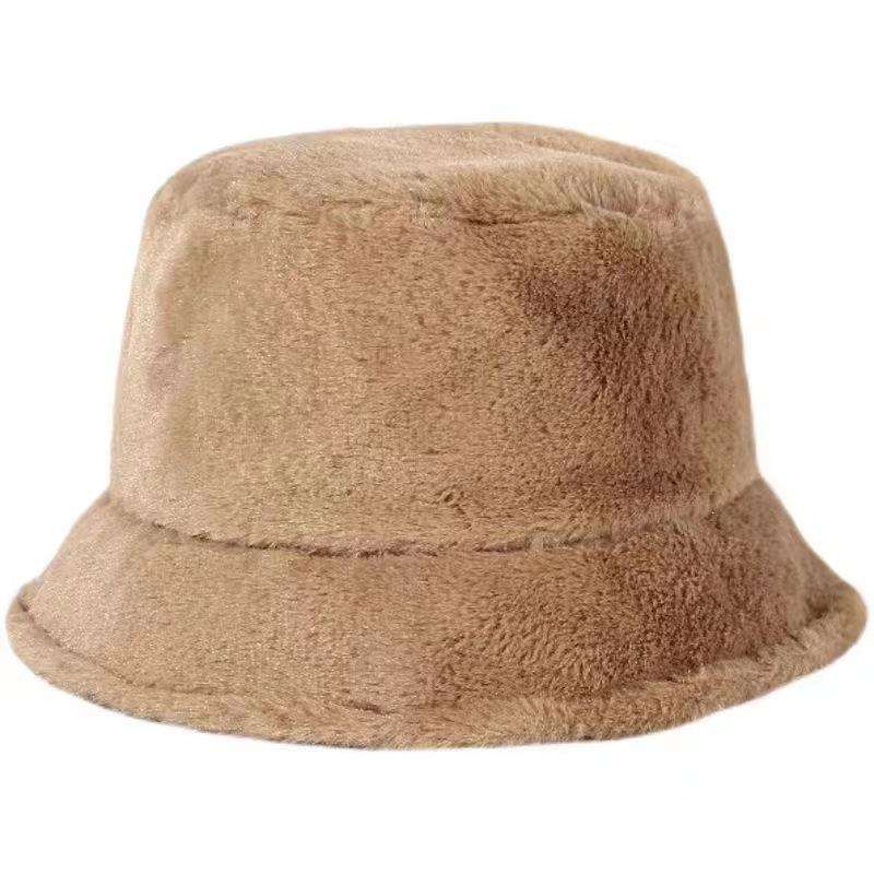 SIDDIQUI HOSINEX 2024 Women's Adult Faux Fur Bucket Hat Solid Laminated Casual Plush Seamless Dyed Winter Keeps Warm Bow Ripped