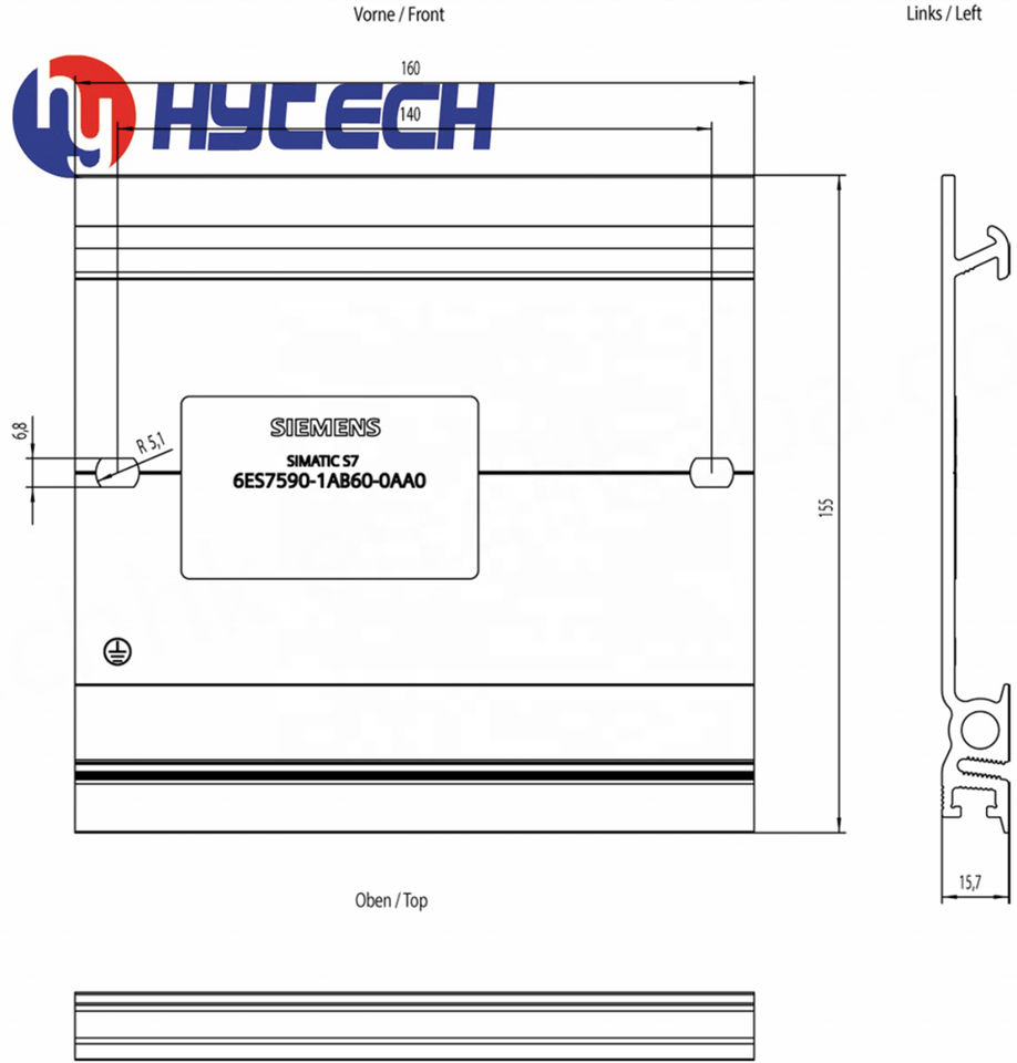 ชื่อสินค้า:รางติดตั้งแบบแบ่งส่วน Siemens S7-1500 ขนาด 160 มม.