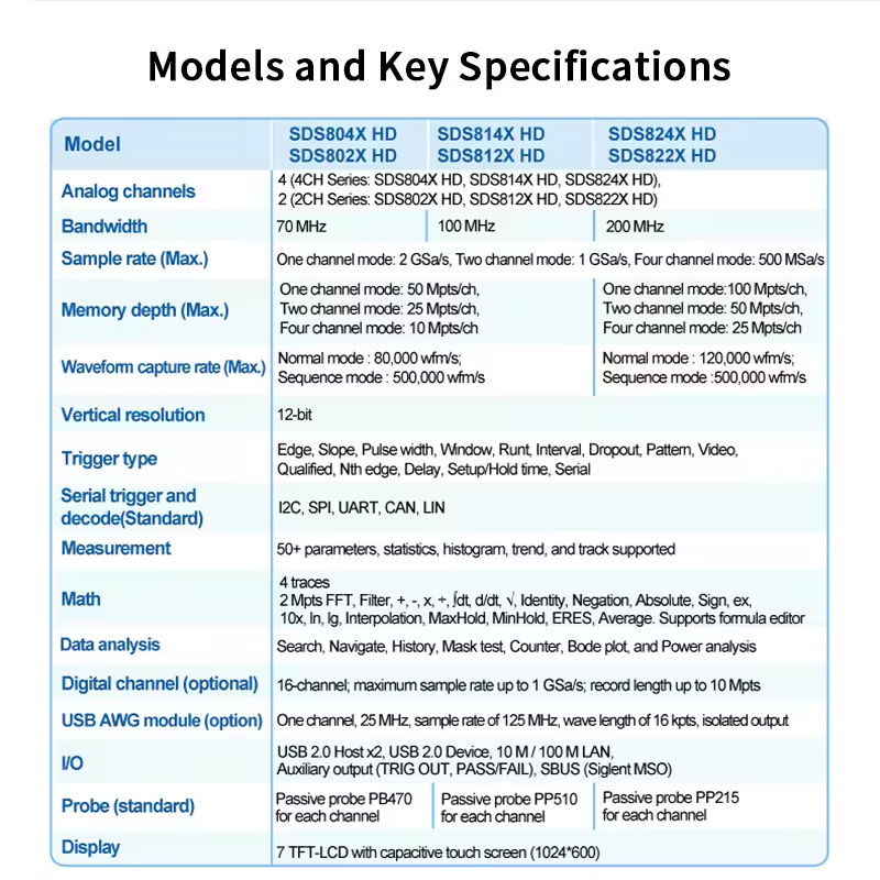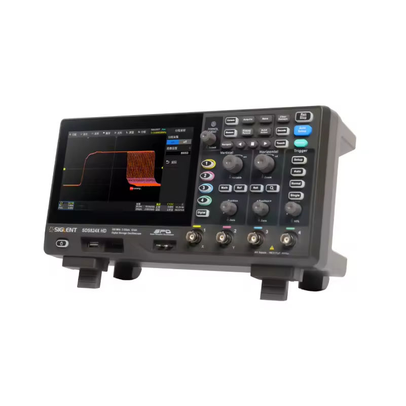 ออสซิลโลสโคปแบบพกพา SIGLENT SDS824 ดิจิตอล 12 บิต 2GS/s การสุ่มตัวอย่าง 2-4 ช่องสัญญาณ แบนด์วิดท์ 200MHz หน้าจอสัมผัส TFT LCD ขนาด 7 นิ้ว