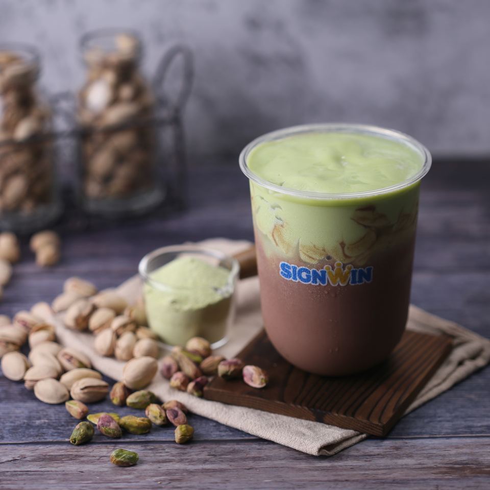 Signwin ผงเครื่องดื่มพิสตาชิโอทำจากไต้หวันรสชาติหวานสำหรับชานมฟองบรรจุในถุง
