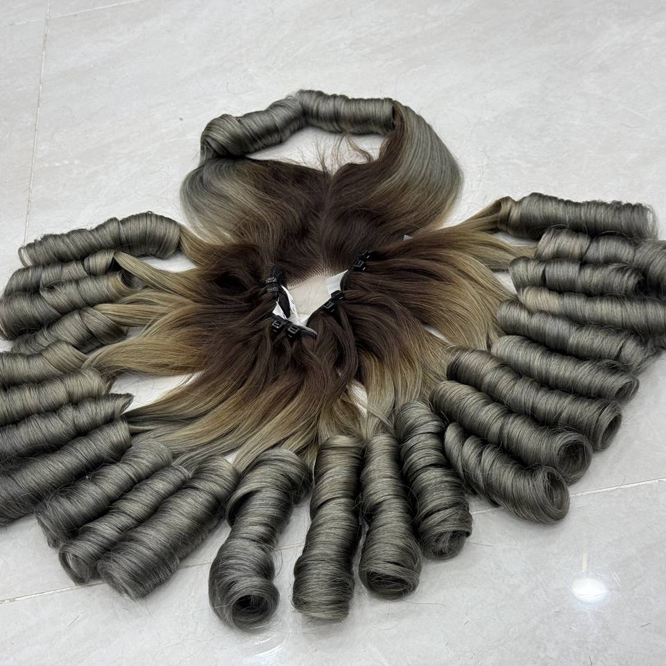 ผมต่อแบบเรมี่ทอเส้นผมมนุษย์แบบม้วนงอสีเงินสีเทาเข้ม