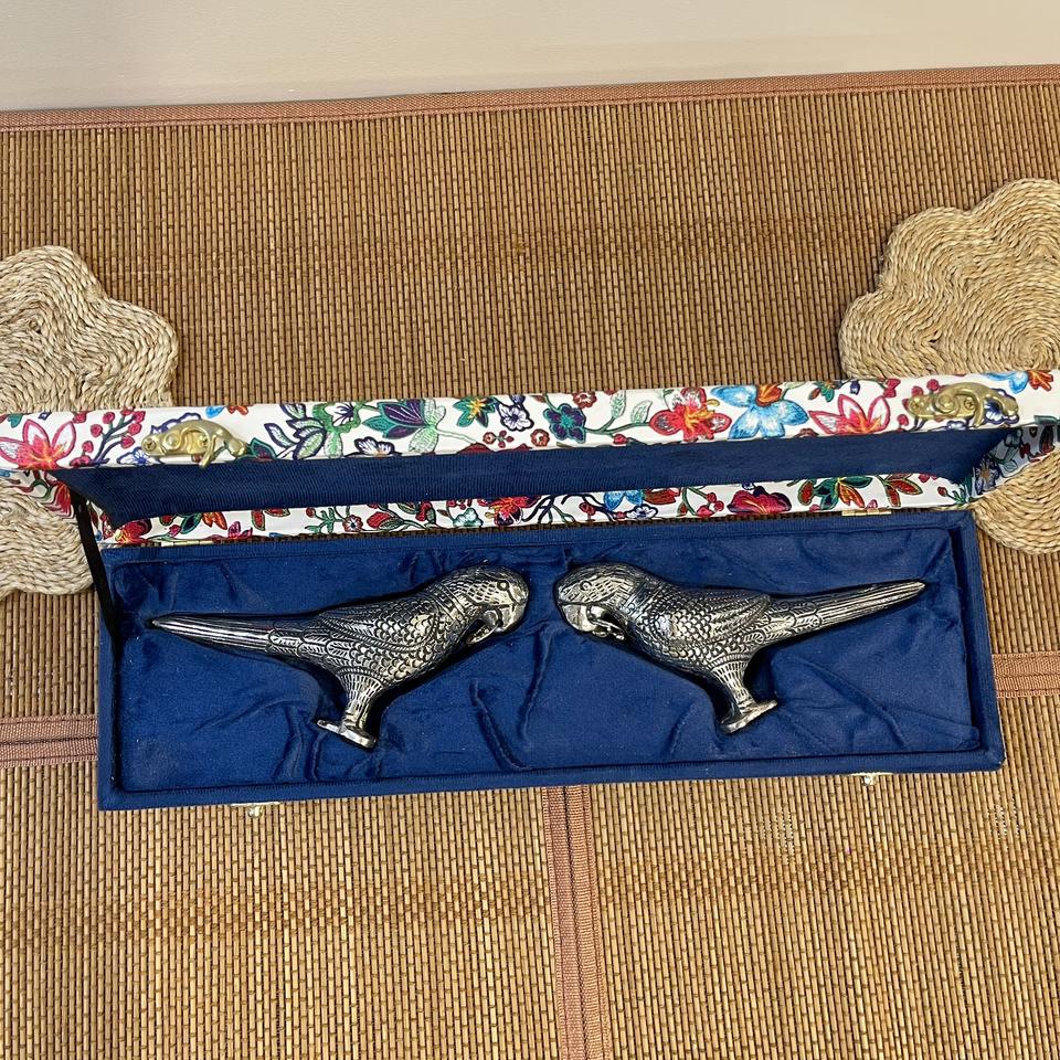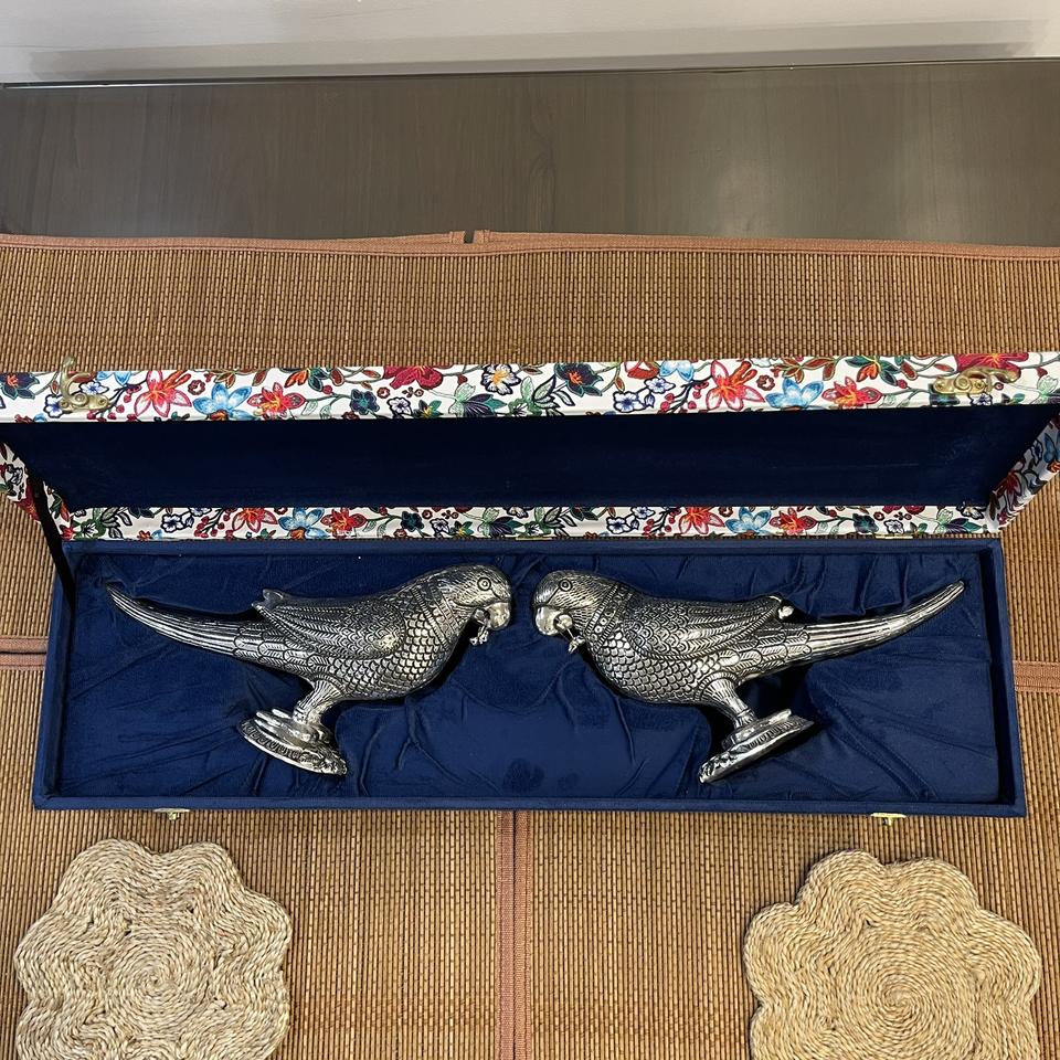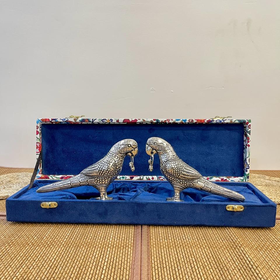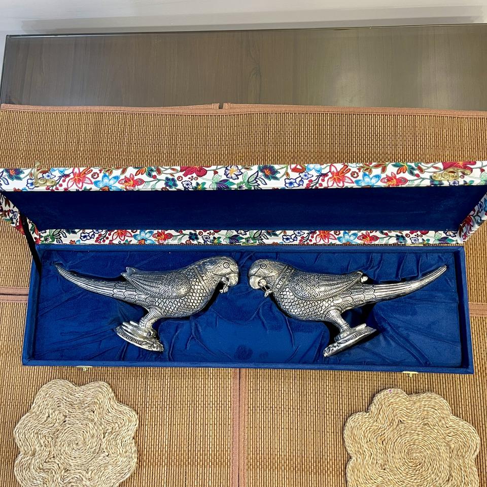 นกแก้วตกแต่งชุบเงินคู่ใหญ่ พร้อมกล่องกำมะหยี่