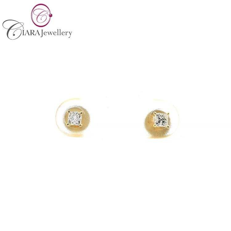 ต่างหูเม็ดเดี่ยวประดับเพชรสีทองพื้น18K แบบเรียบง่ายสำหรับเจ้าหญิงแท้สีเหลืองทองธรรมชาติ