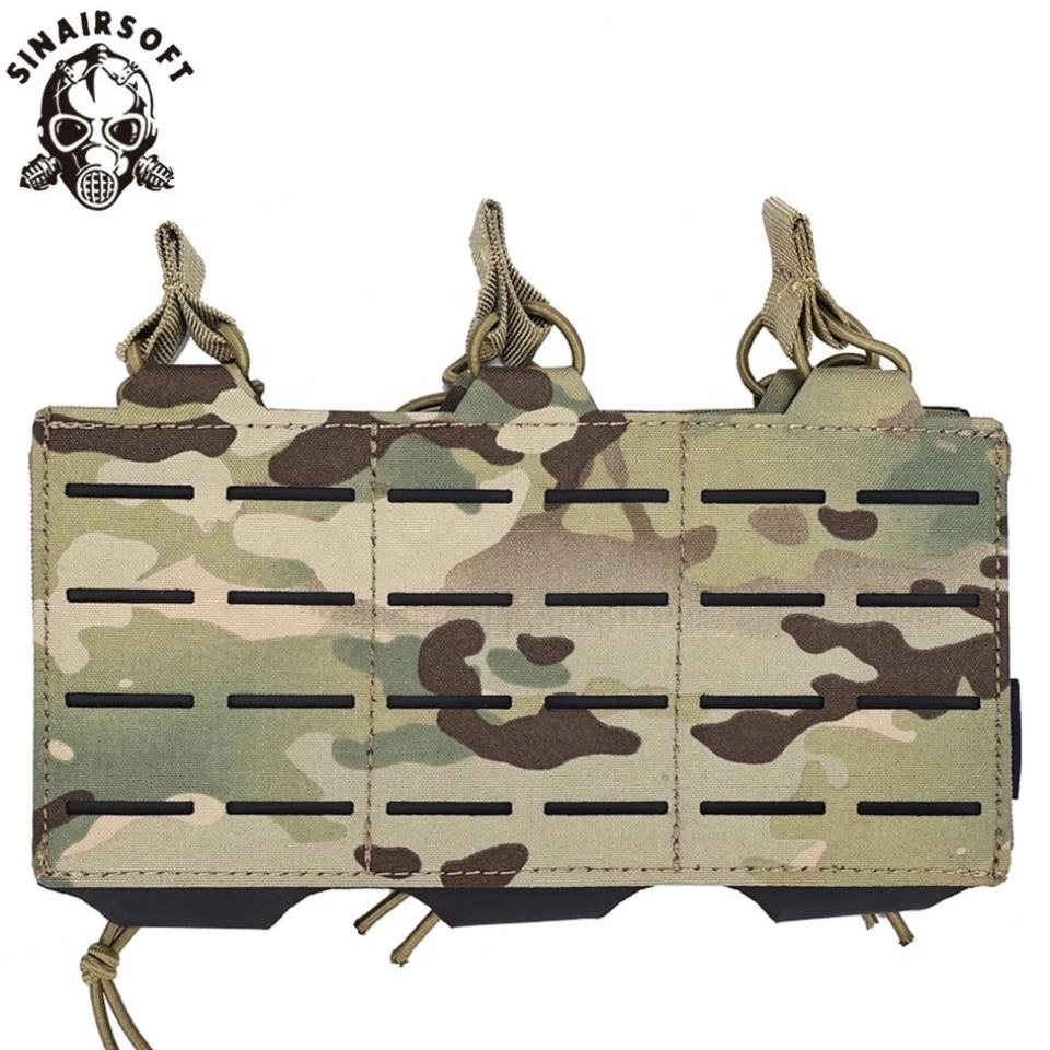 ซองใส่แม็กกาซีนแบบสามช่องลายพรางตัดด้วยเลเซอร์ SINAIRSOFT ทำจากไนลอน 500D ระบบ Molle สำหรับแม็กกาซีนขนาด 5.56 มม.