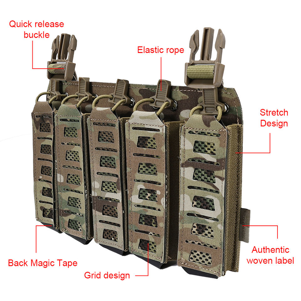 ซองใส่แม็กกาซีนปืนพก 9 มม. ยี่ห้อ SINAIRSOFT แบบยุทธวิธี พร้อมแถบตีนตุ๊กแกและสายรัดยางยืดสำหรับเสื้อเกราะและอุปกรณ์เสริม