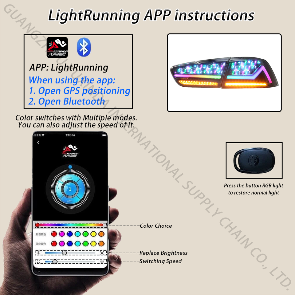 ไฟท้ายรถยนต์ SINDAR แบบดิจิตอล LED RGB สำหรับ Mitsubishi Lancer EX ปี 2008-2017 อะไหล่ไฟท้าย DRL ไฟเลี้ยวแบบไดนามิก ปี 2015 2017