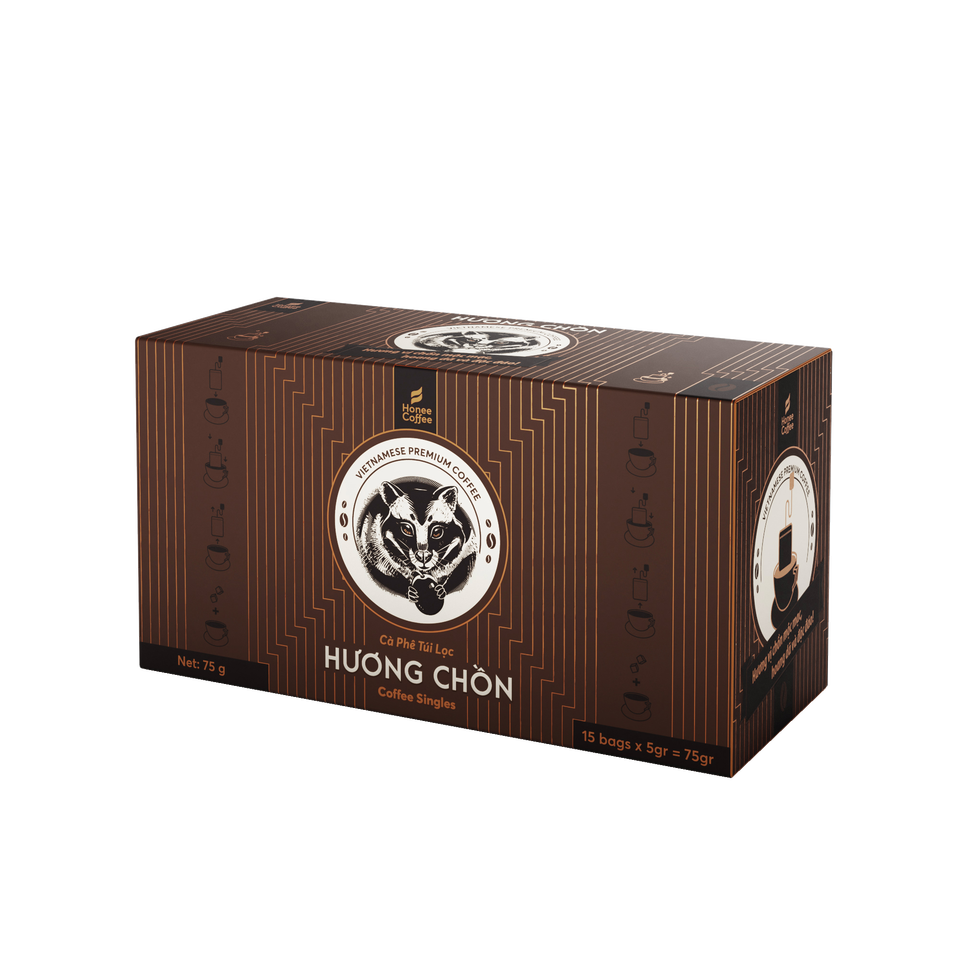 SINGLE-SERVE Coffee HUONG CHON Silver 15 Sachets X 5g/box, Weasel-aroma Ground Coffee Convenient to Brew by HONEE COFFEE