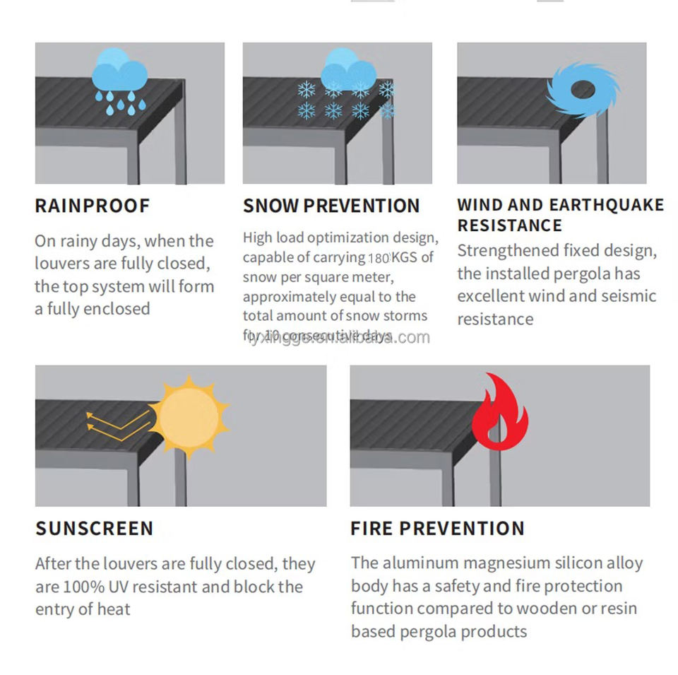 ประเภท:กลางแจ้งกันน้ำอลูมิเนียม louvered Pergola