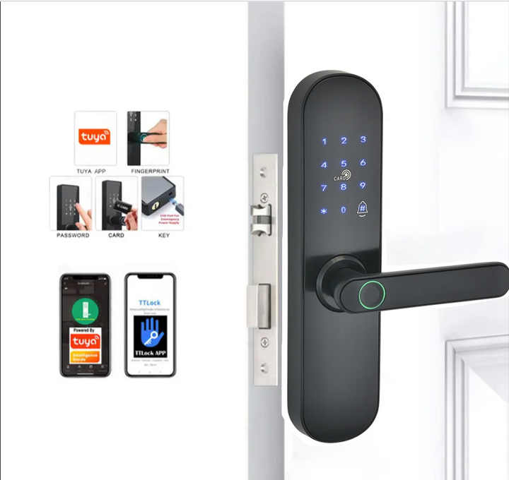 กุญแจล็อคอัจฉริยะ SINON Tuya ควบคุมผ่าน WiFi พร้อมระบบสแกนลายนิ้วมือ วัสดุเหล็กกล้าไร้สนิม รองรับการ์ดหน่วยความจำ สำหรับประตูเหล็ก