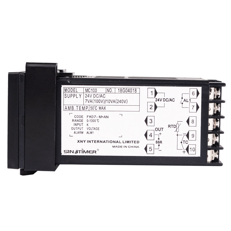 Sinotimer MC100-24V ตัวควบคุมอุณหภูมิ PID, เทอร์โมสตัทดิจิตอลตัวควบคุมอุณหภูมิ24V DC/AC เอาต์พุต SSR เทอร์โมคัปเปิล K เซ็นเซอร์ ce/rohs