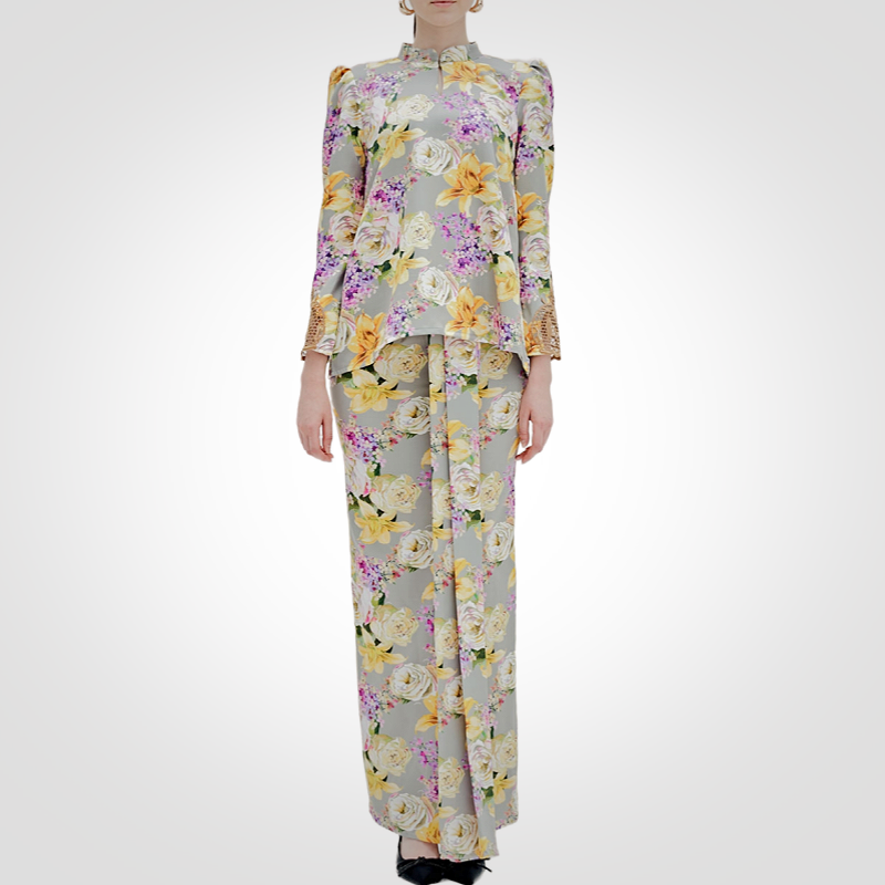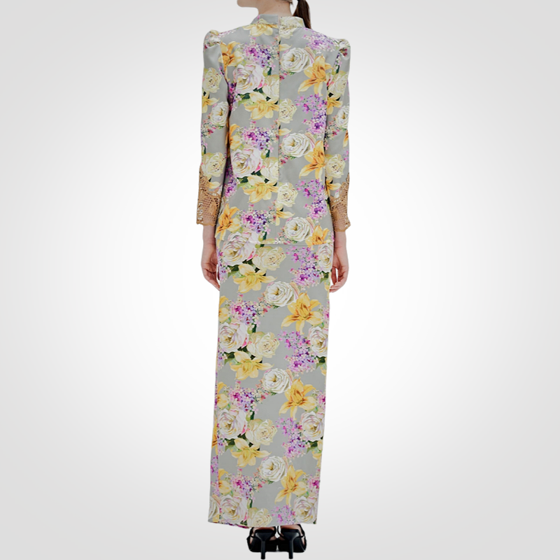 ชุดบาจูกูรุงเคดาห์ลายดอกไม้ แขนลูกไม้ ระบายอากาศได้ดี มีบราในตัว สำหรับผู้หญิงมุสลิม ขายดีช่วงอีดในมาเลเซีย