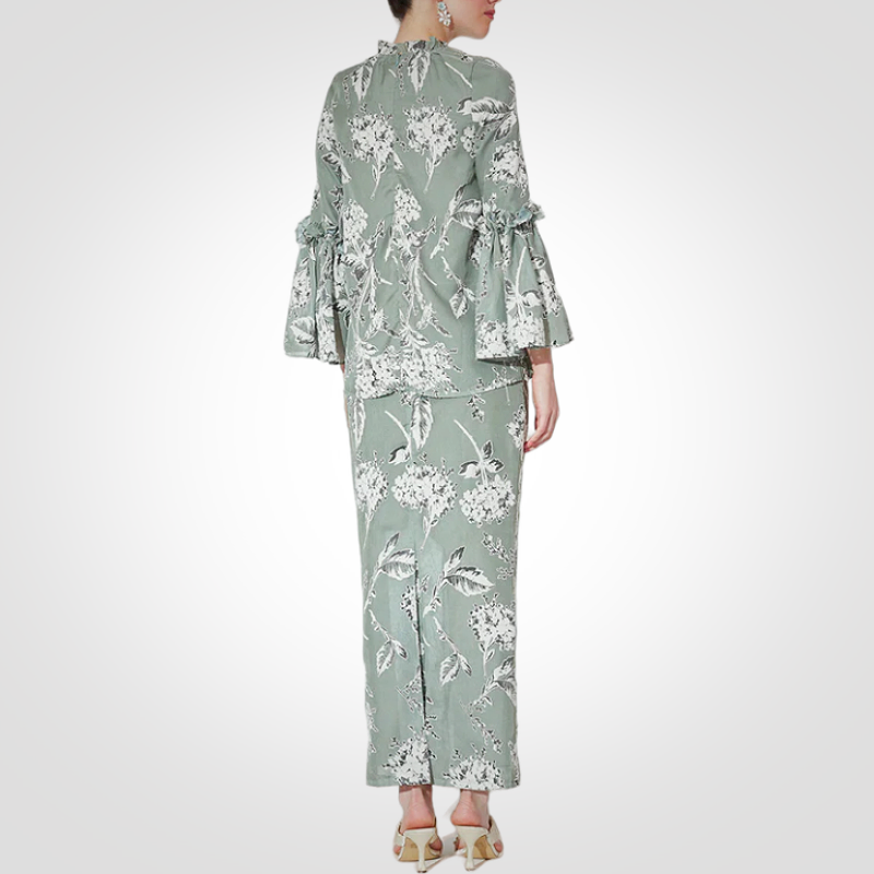 Sipo Eid kurung Kedah ผู้หญิงพิมพ์ลายตรงเรียบแขนเสื้อปกติและคอกลม