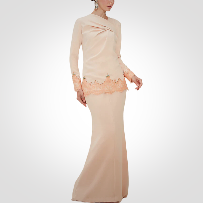 Sipo Moden Baju kurung ชุดเดรสสั้นคอเสื้อพร้อมผ้าลูกไม้ชายกระโปรงอีดมาเลเซียรายาขายส่งพิมพ์ลาย