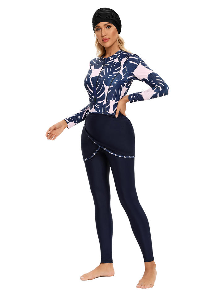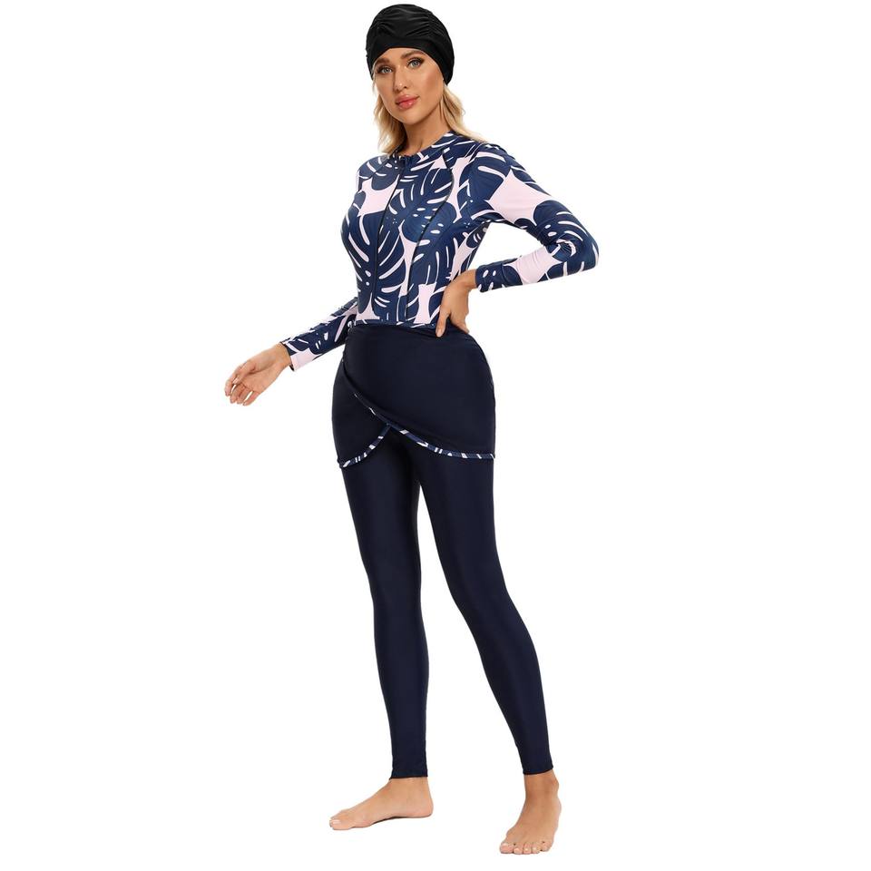 SIPO ชุดว่ายน้ำมุสลิมแขนยาวสำหรับผู้หญิง,มาพร้อมกับกระโปรงสั้นหมวก4ชิ้น