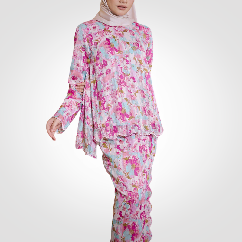 SIPO ออกแบบใหม่มาเลเซีย Lipat-บาติกพิมพ์ฟลอร่าชีฟองชุดสตรีมุสลิม Fesyen โมเดิร์น Baju Kurung สําหรับผู้หญิง