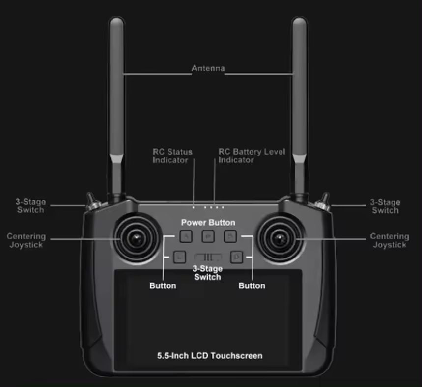 รีโมทคอนโทรลไร้สาย SIYI MK15 สำหรับโดรนเกษตร ขนาด 5.5 นิ้ว ความละเอียด 1080p 60fps 180ms ระยะ 15 กม.