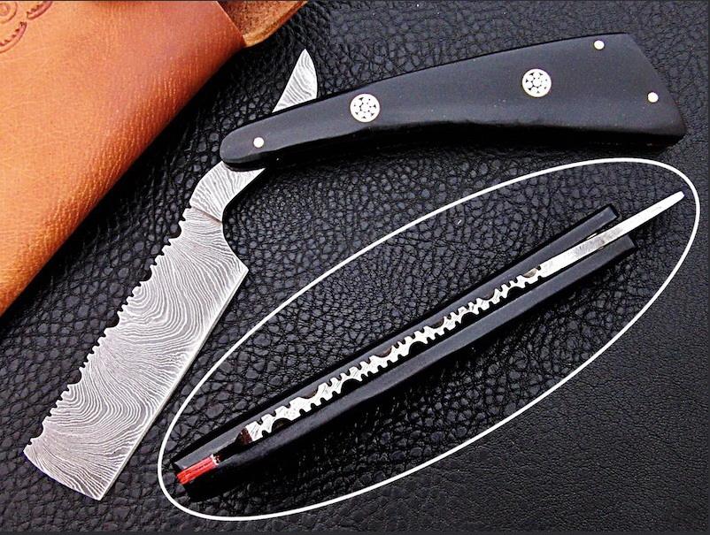 มีดโกนเหล็กดามัสกัส SJ รุ่นหรูหราสำหรับผู้ชาย ใบมีดเดี่ยว ด้ามจับพลาสติกและไม้ สำหรับโกนหนวดและใช้ในร้านตัดผม