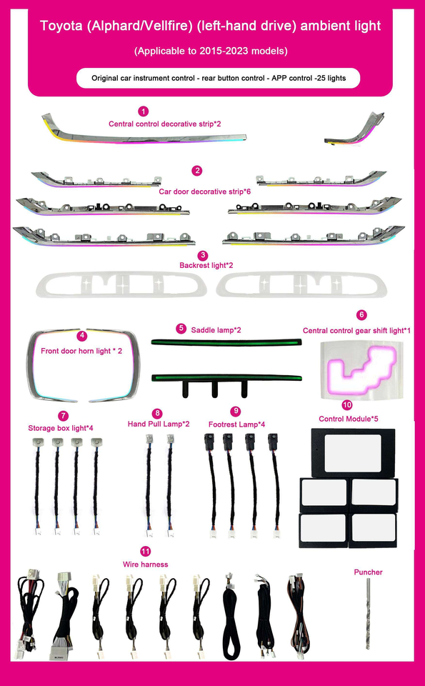 2023 2015ไฟภายใน Sjc 64สีสำหรับ Toyota Alphard 30ซีรีส์ Vellfire Symphard ระบบไฟอัตโนมัติ