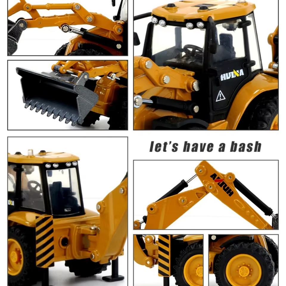 โมเดลรถขุดโลหะผสมแบบหล่อขึ้นรูป SJY-1704 ขนาด 1:50 ของเล่นรถขุดแบบสองทิศทาง รถบรรทุกก่อสร้าง