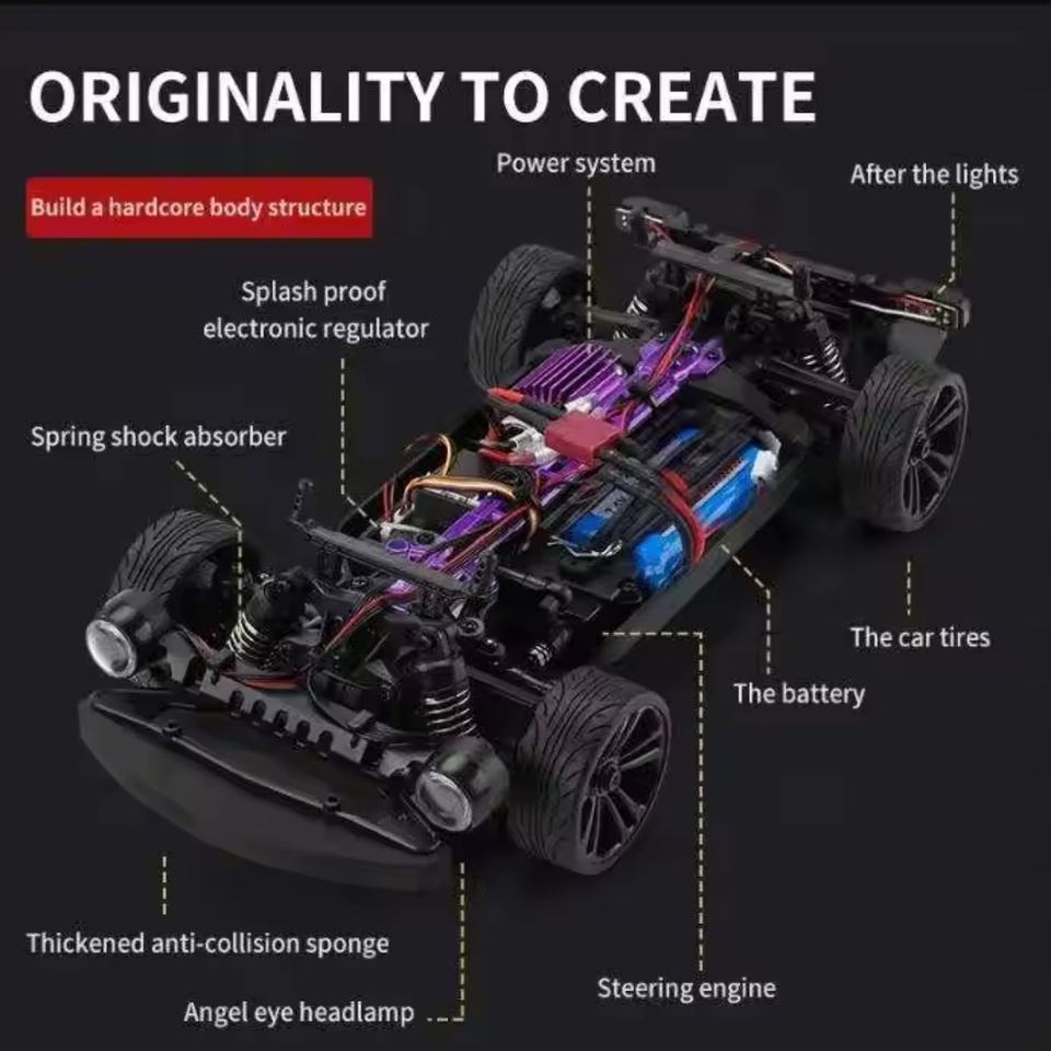 ชื่อผลิตภัณฑ์:รถดริฟท์ความเร็วสูง 4WD ไฟฟ้าแบบสัดส่วนเต็มรูปแบบ รุ่น RC สำหรับการแข่ง