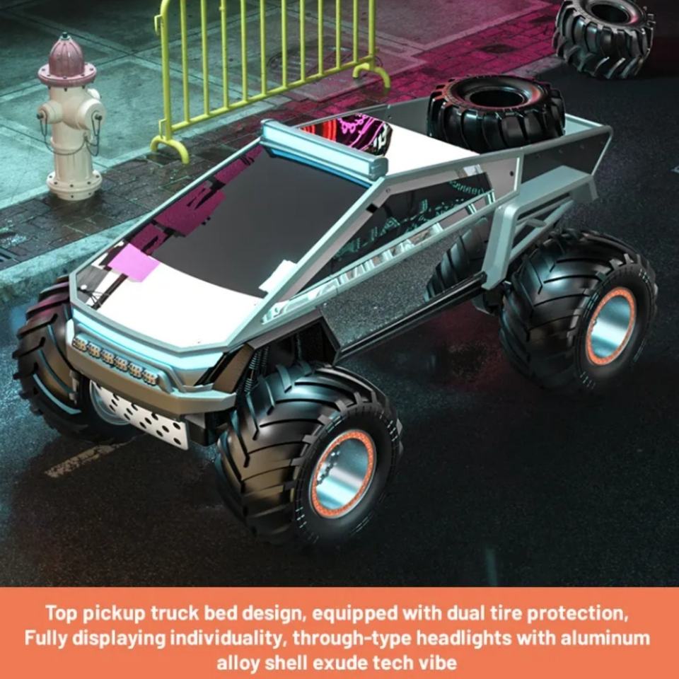 รถแข่งไฟฟ้าอัลลอยด์ SJY-Q202 ไซเบอร์ทรัค 4 ช่องสัญญาณ พร้อมเล่น รถบังคับวิทยุออฟโรด ของเล่นเด็ก พร้อมรีโมทคอนโทรล สาย USB ไฟส่องสว่าง