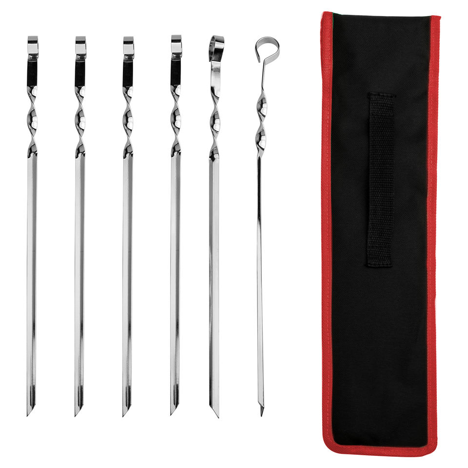 ชุดอุปกรณ์บาร์บีคิวแบบเกาหลีกลางแจ้งชุดเครื่องมือบาร์บีคิวแบบ SK-2101 6ชิ้นเสียบแบบเกลียวสำหรับย่างกุ้งสแตนเลสเป็นมิตรกับการตั้งแคมป์