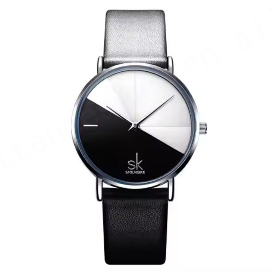 SK shengke 0095นาฬิกาผู้หญิงกันน้ำสีโรสโกลด์, เข็มขัดตาข่ายหนังสองโทนสีโรสโกลด์