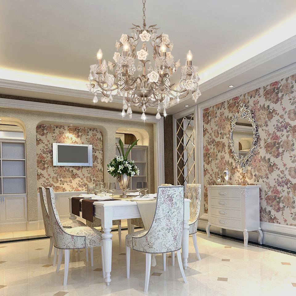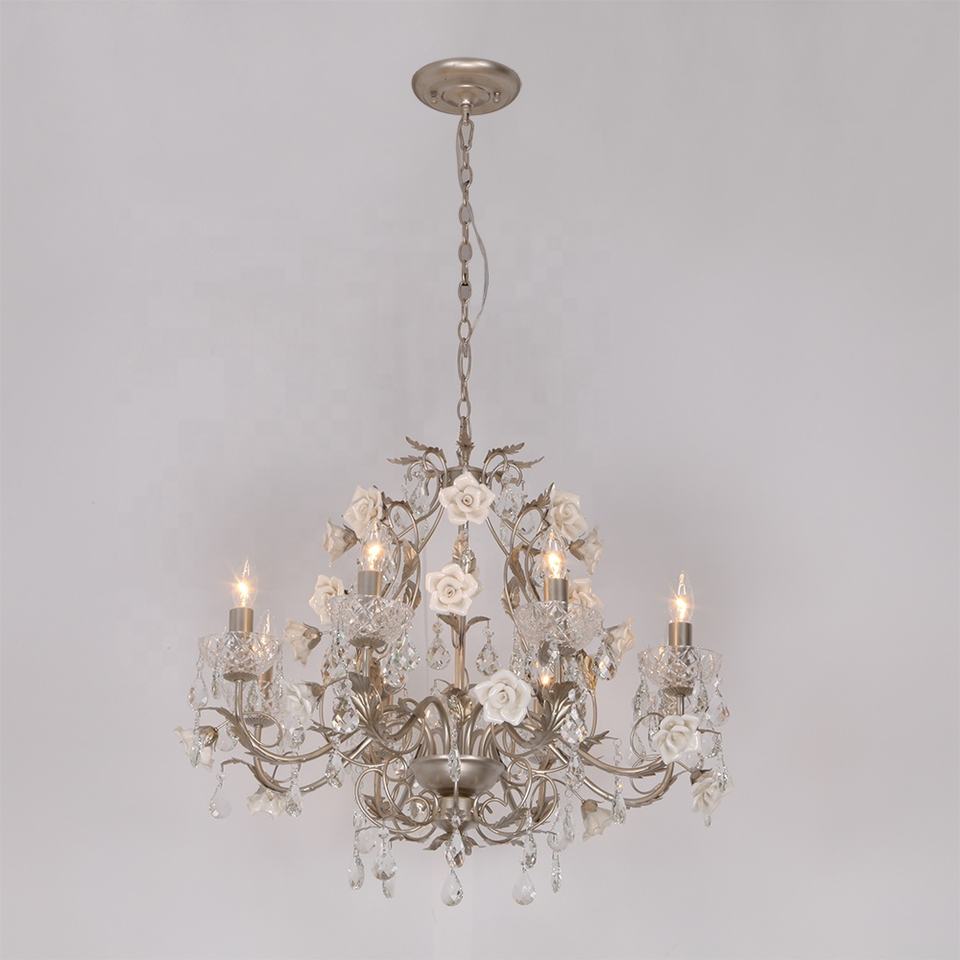 โคมระย้าสีขาวจี้กุหลาบหรูหรา skd sunsir โคมระย้าสีขาววินเทจ110V โคมไฟแขวนเพดานแฟนซีโคมไฟคริสตัลสำหรับโรงแรม