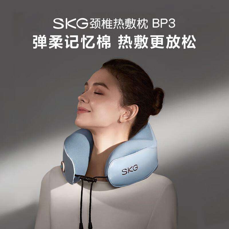 SKG เครื่องนวดคอ BP3 สีฟ้าอ่อน หมอนทำความร้อนแบบชาร์จ USB แบบพกพา รองรับกระดูกสันหลังส่วนคอ