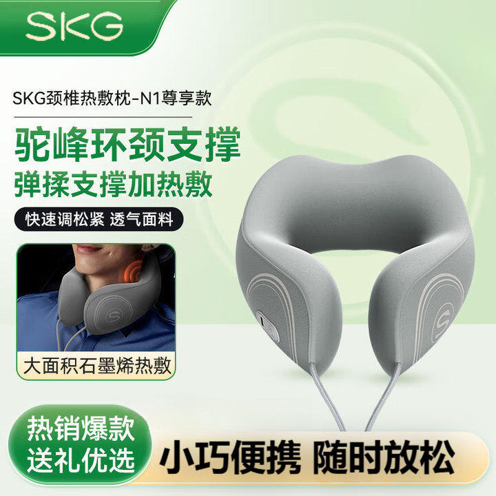 SKG หมอนรองคอรูปตัวยูสีเทา N1 ซีรีส์รุ่นที่ 1 รุ่นพรีเมี่ยมเครื่องนวดคอแบบใช้พลังงานจากยูเอสบีสำหรับการเดินทางใช้ในบ้าน
