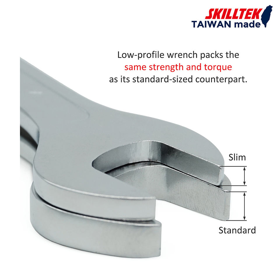 ประแจปากตาย SKILLTEK ระดับมืออาชีพ ขนาด 21 มม. ผลิตด้วยวิธีการตีขึ้นรูป ชุบโครเมียม แข็งแรงระดับอุตสาหกรรม สำหรับซ่อมจักรยาน รถยนต์ และงาน DIY