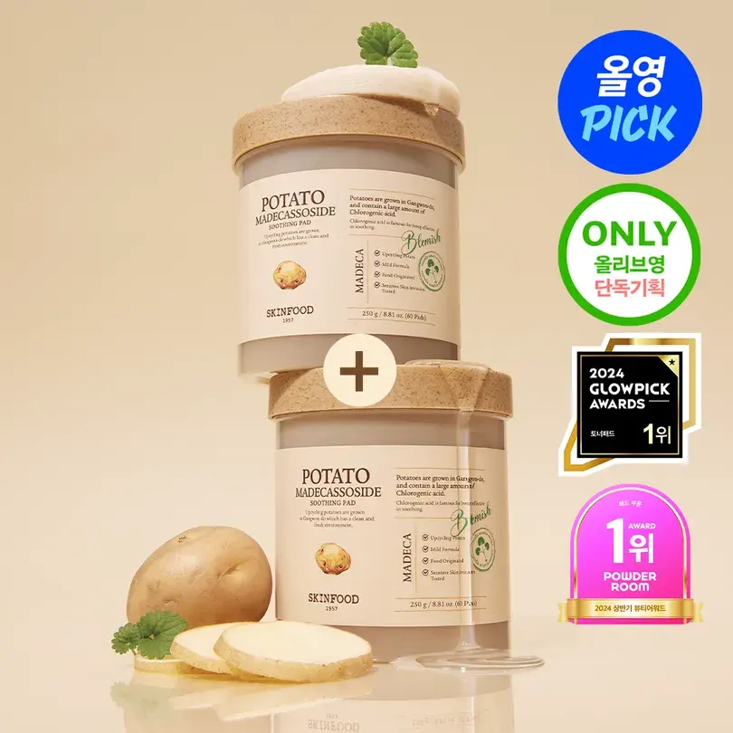 Skinfood Potato madecasside Soothing 60 Pads ชุดคู่ผลิตภัณฑ์ดูแลรอยแผลเป็น