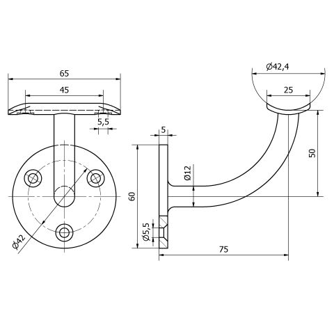 SKU ราวแขวน C110013-L แสตนเลสแบบที่1สำหรับราวจับ Ø 42.4ราวบันไดและอุปกรณ์เสริมราวจับ