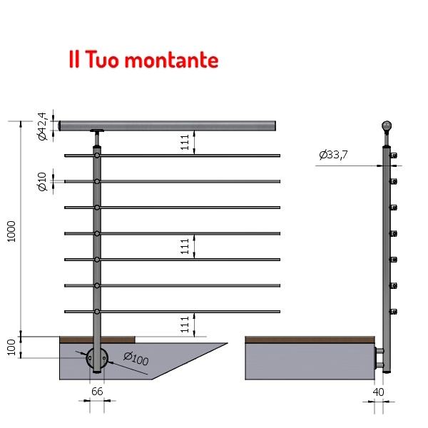 SKU P110107-7ตั้งตรง33.7 Ø ซาติน-สำเร็จ Aisi 304สแตนเลส1.00เมตรราวบันไดสูงราวจับยึดด้านข้างภายนอก