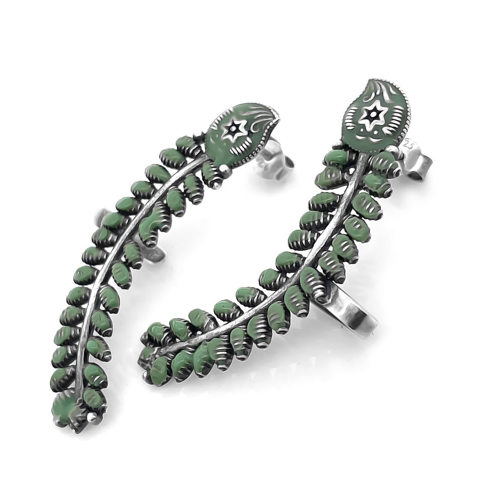 ต่างหูรูปใบไม้เคลือบสีเขียว SKU7550 น่ารัก ทำจากเงินแท้ 925 พร้อมลายดาวนูน เหมาะสำหรับงานปาร์ตี้ วันครบรอบ และเป็นของขวัญ