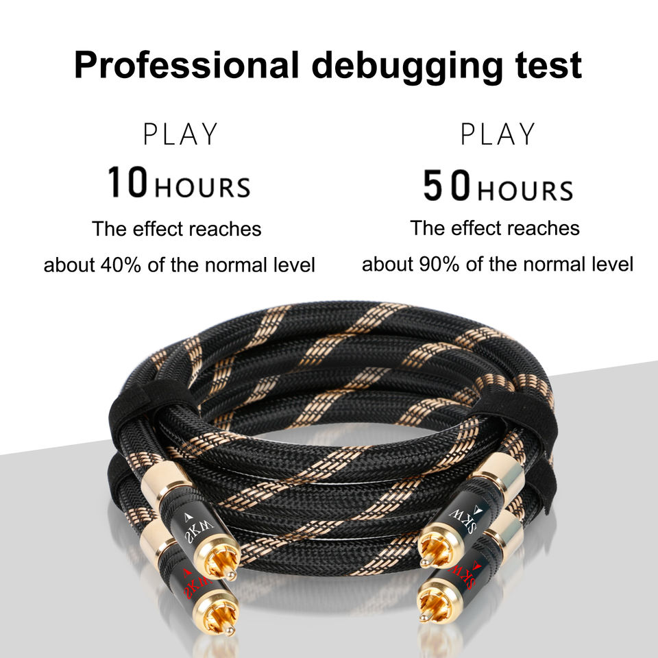 สายเชื่อมต่อ SKW Audiophiles Lock ชุบทอง 24K หัวต่อ 2RCA ตัวผู้ 2RCA ตัวผู้ คุณภาพ Ultra-HiFi สายถัก สำหรับ HDTV เครื่องเล่น DVD คอมพิวเตอร์