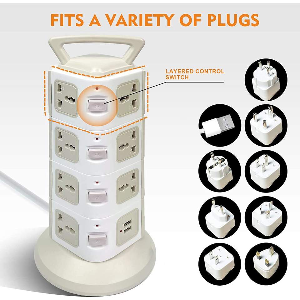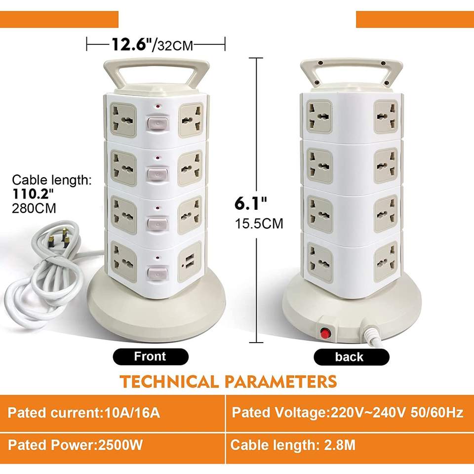 Sky-Touch 14-Outlet สถานีชาร์จไฟกระชากแนวตั้งทาวเวอร์4พอร์ต USB ชาร์จอเนกประสงค์